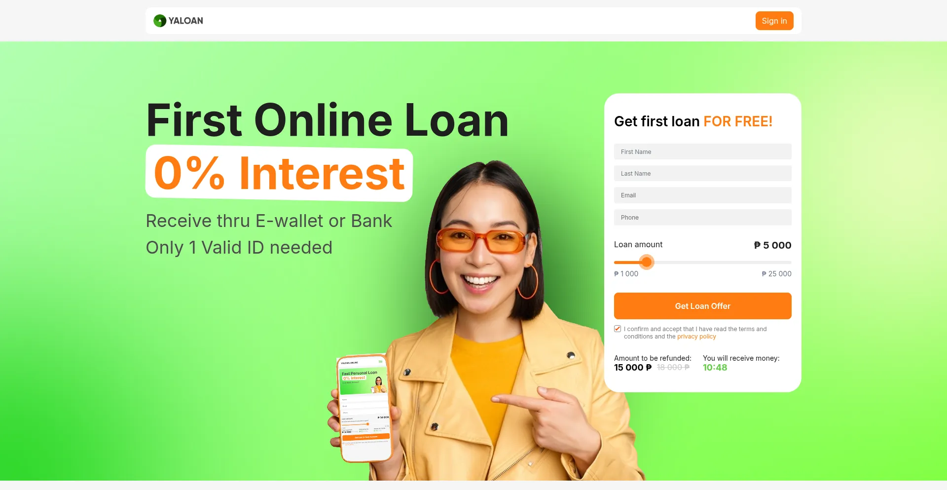 该网站实现数据收集表单,请求个人信息,包括姓名、电子邮件地址、电话号码或其他敏感详细信息。用户应验证 yaloan.online 的合法性并在提交个人数据前查看隐私政策。