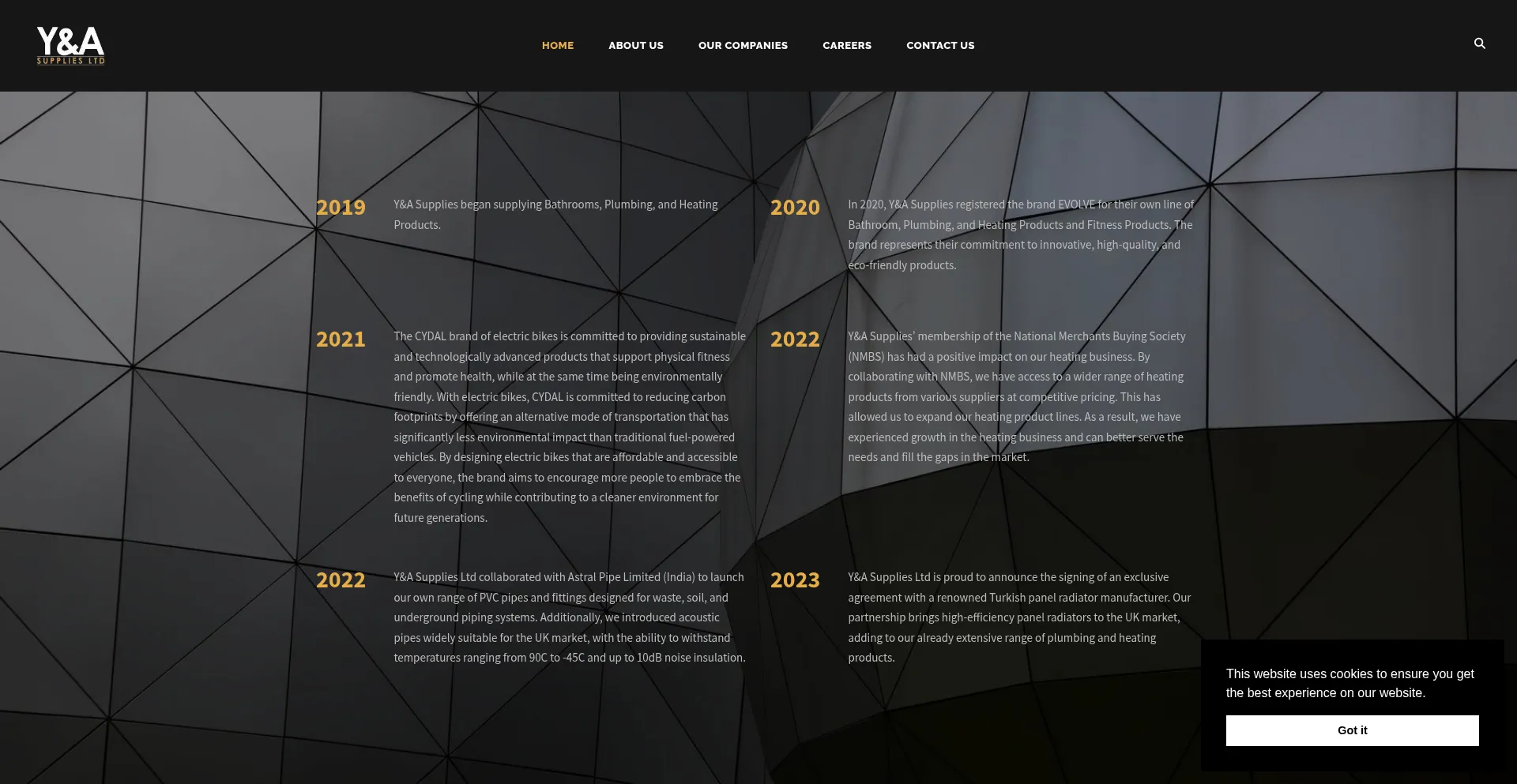 该网站实现符合GDPR或CCPA等隐私法规的cookie同意机制。这表明 yasupplies.co.uk 遵守数据保护标准并为用户提供对个人数据收集实践的控制。