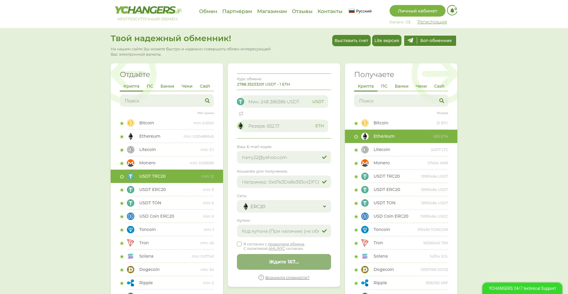 YChangers является лучшим в области качественных услуг обмена онлайн. Провести быстрый и выгодный об...