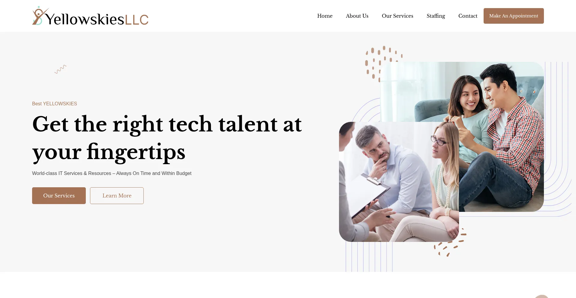 yellowskiesllc.com 使用 Bootstrap,这是一个广泛采用的开源响应式网页开发框架。Bootstrap 通过标准化组件和样式实现移动友好界面的高效创建。