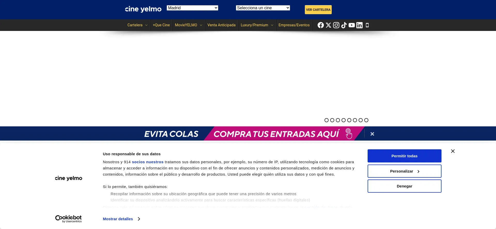 该网站实现符合GDPR或CCPA等隐私法规的cookie同意机制。这表明 yelmocines.es 遵守数据保护标准并为用户提供对个人数据收集实践的控制。