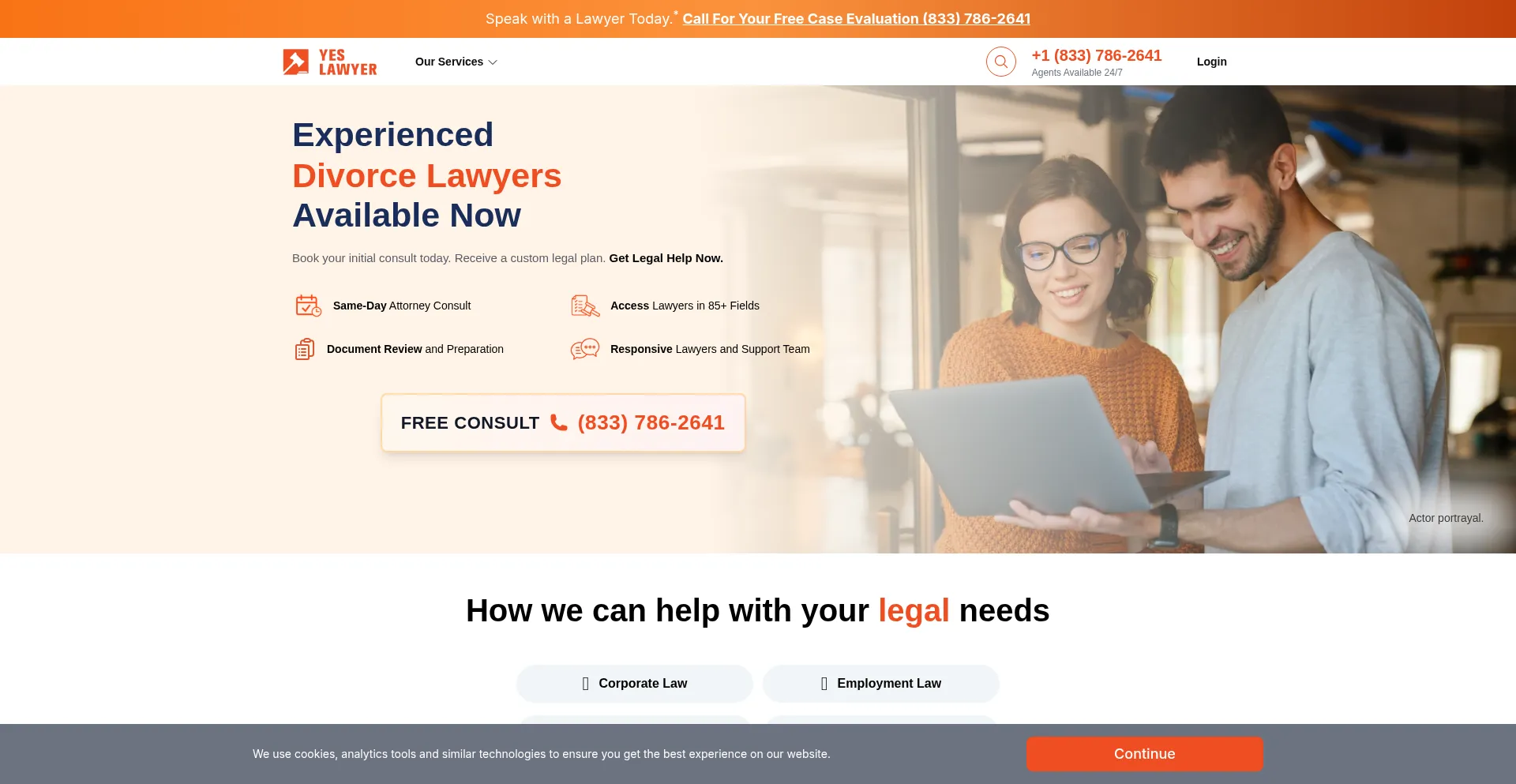 该网站实现符合GDPR或CCPA等隐私法规的cookie同意机制。这表明 yeslawyer.com 遵守数据保护标准并为用户提供对个人数据收集实践的控制。