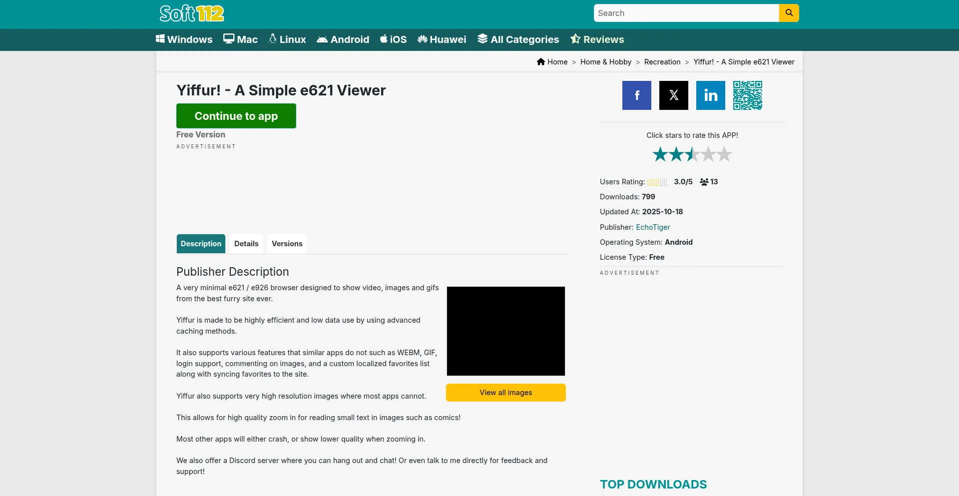 网站上存在社交媒体链接表明 yiffur-a-simple-e621-viewer.soft112.com 在社交媒体上维护官方账户,这是可信度和参与度的积极信号。