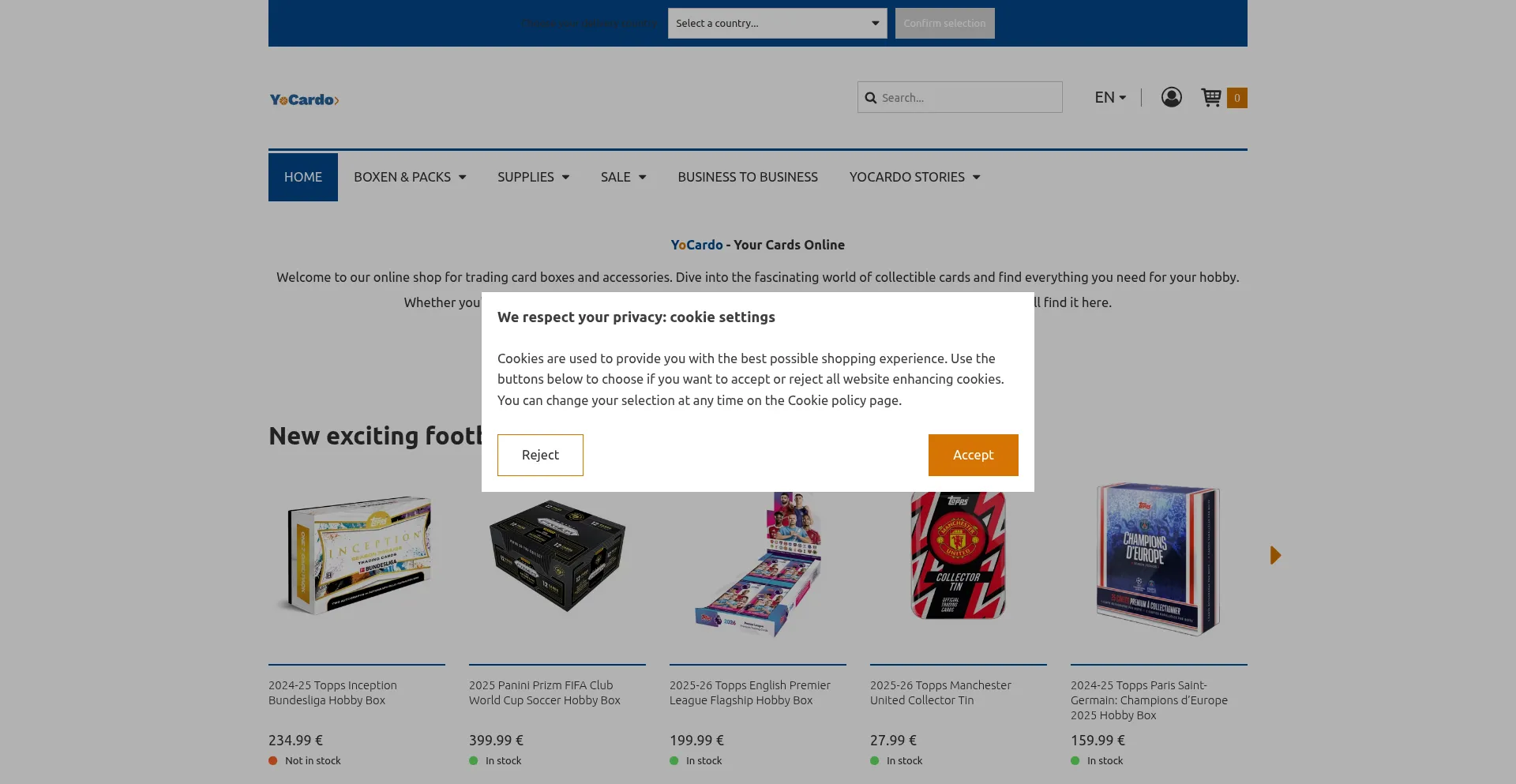 该网站实现符合GDPR或CCPA等隐私法规的cookie同意机制。这表明 yocardo.com 遵守数据保护标准并为用户提供对个人数据收集实践的控制。