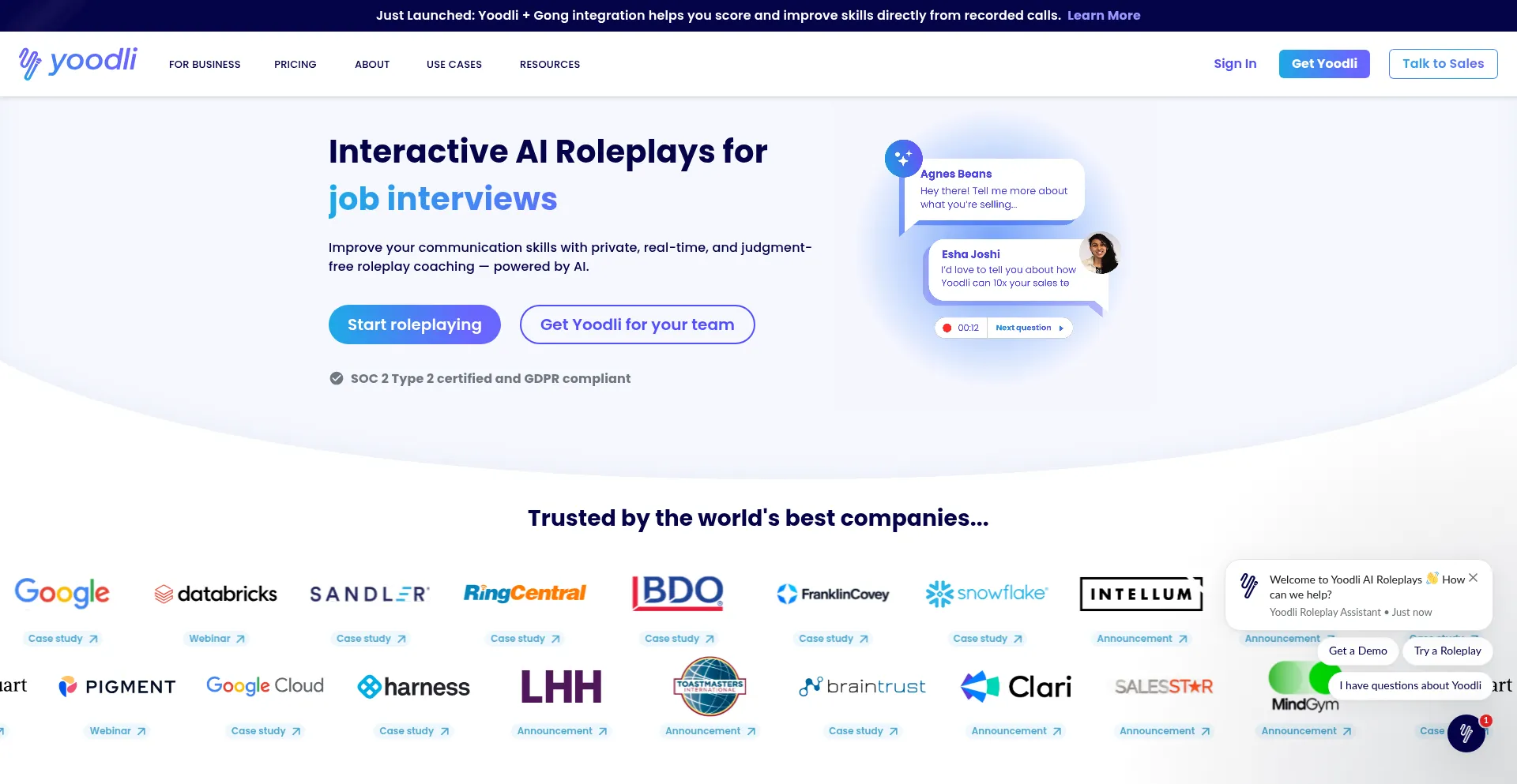 该网站实现符合GDPR或CCPA等隐私法规的cookie同意机制。这表明 yoodli.ai 遵守数据保护标准并为用户提供对个人数据收集实践的控制。