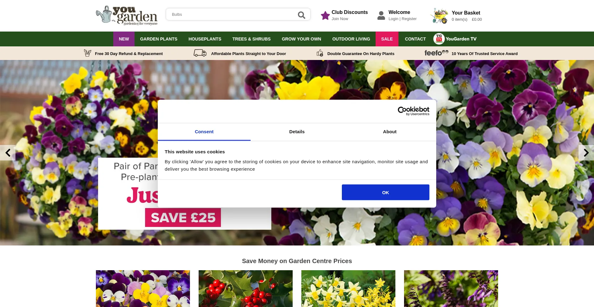 该网站实现符合GDPR或CCPA等隐私法规的cookie同意机制。这表明 yougarden.com 遵守数据保护标准并为用户提供对个人数据收集实践的控制。