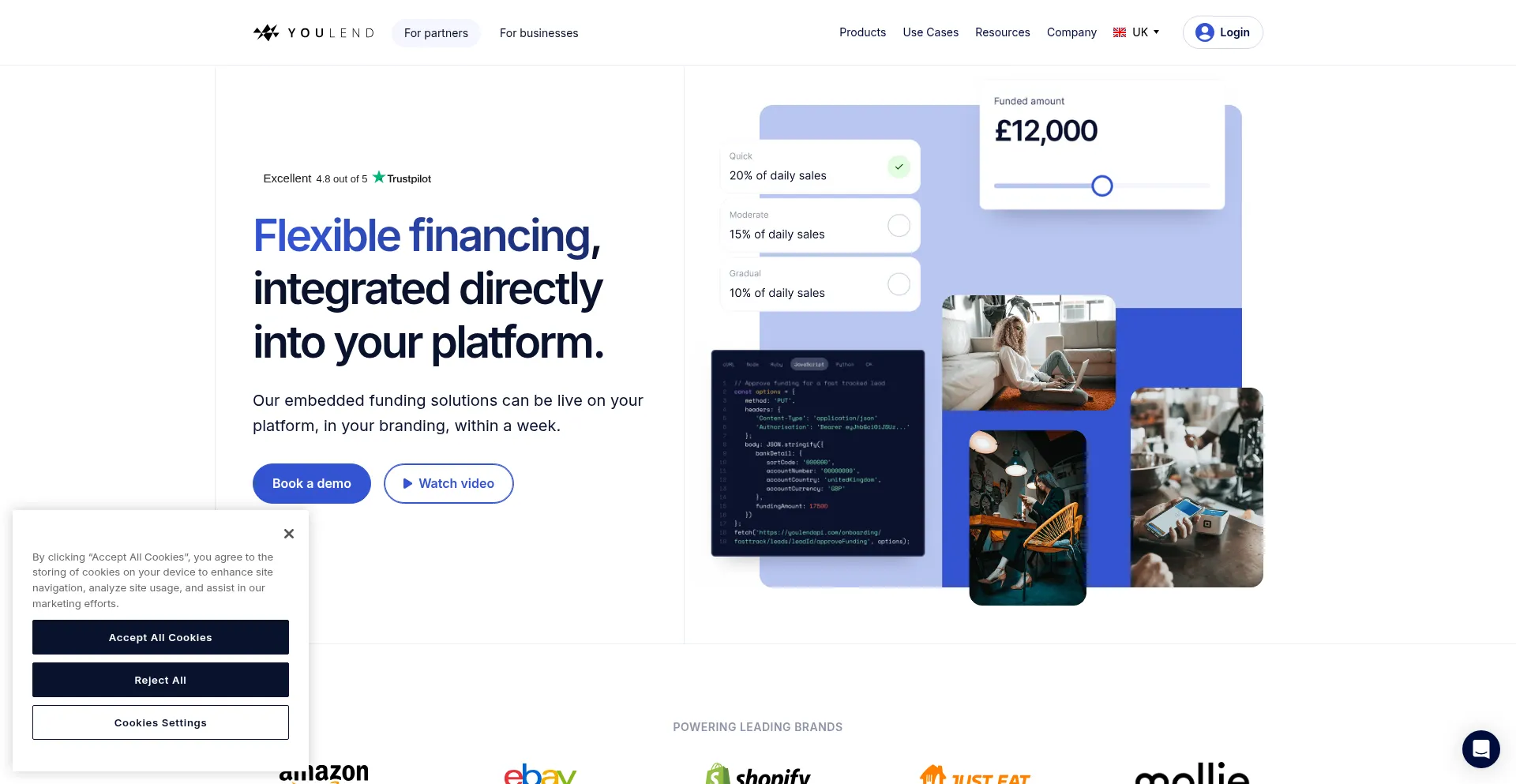 该网站实现符合GDPR或CCPA等隐私法规的cookie同意机制。这表明 youlend.com 遵守数据保护标准并为用户提供对个人数据收集实践的控制。