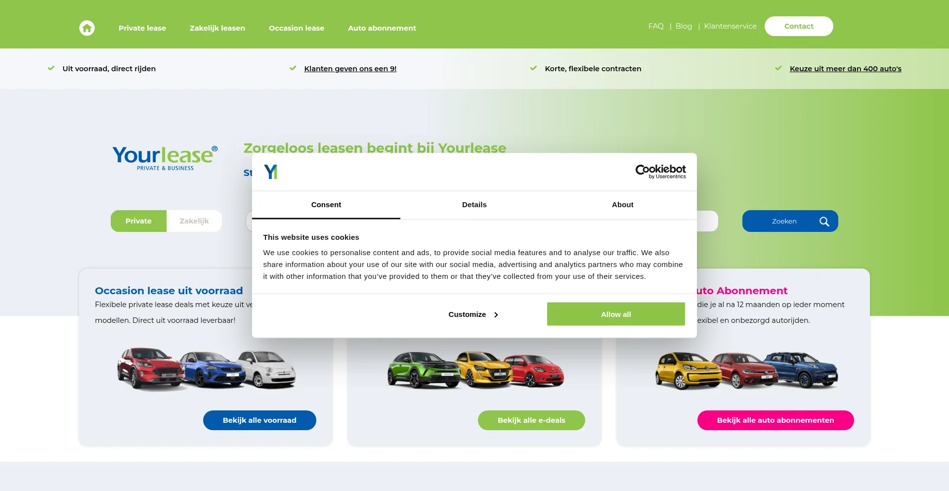 Lease al vanaf 238,- per maand all-in bij Yourlease. Vind je leaseauto tussen de grootste voorraad nieuwe en jong gebruikte auto's van Nederland. Flexibel, snel en persoonlijk!