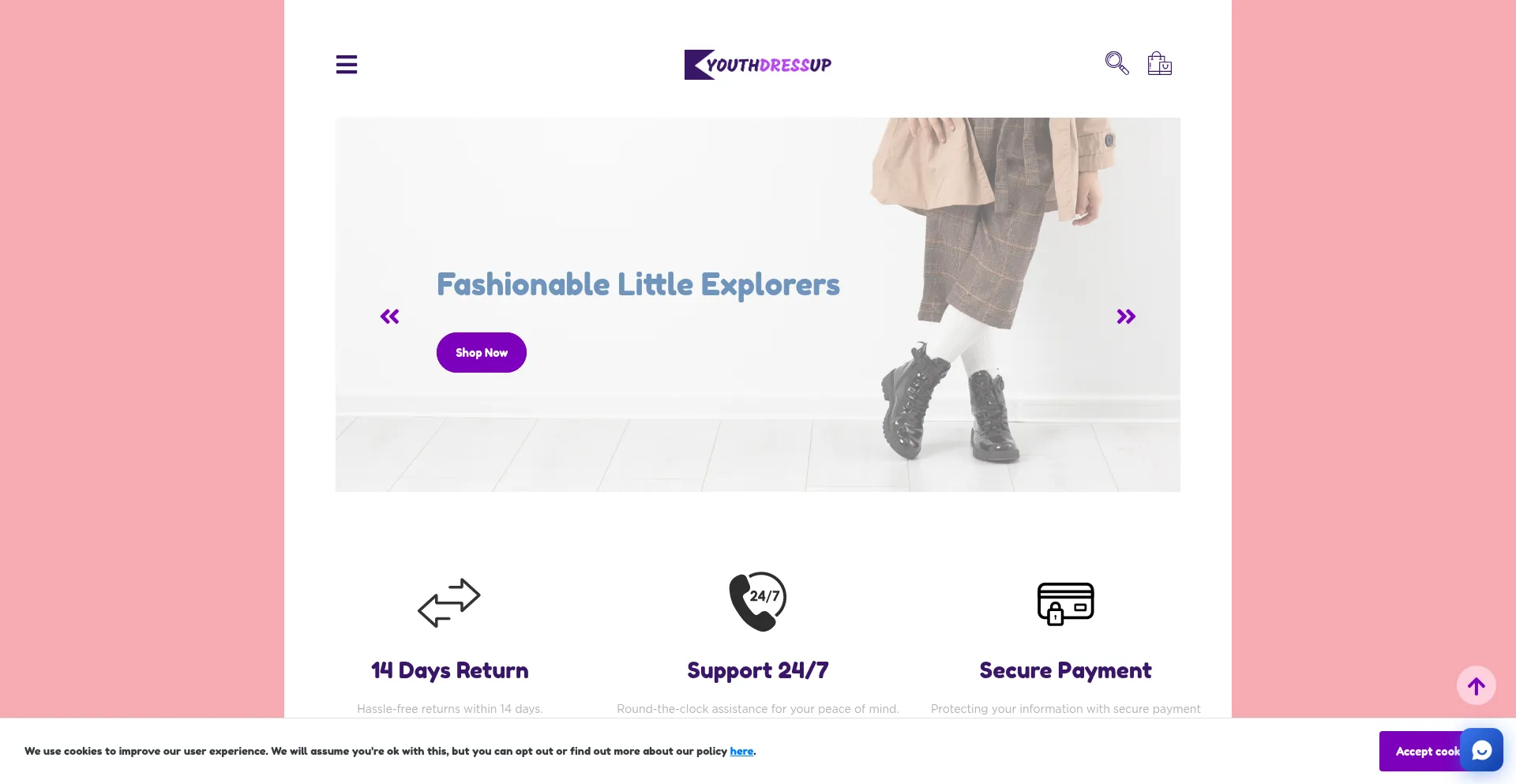该网站实现符合GDPR或CCPA等隐私法规的cookie同意机制。这表明 youthdressup.com 遵守数据保护标准并为用户提供对个人数据收集实践的控制。