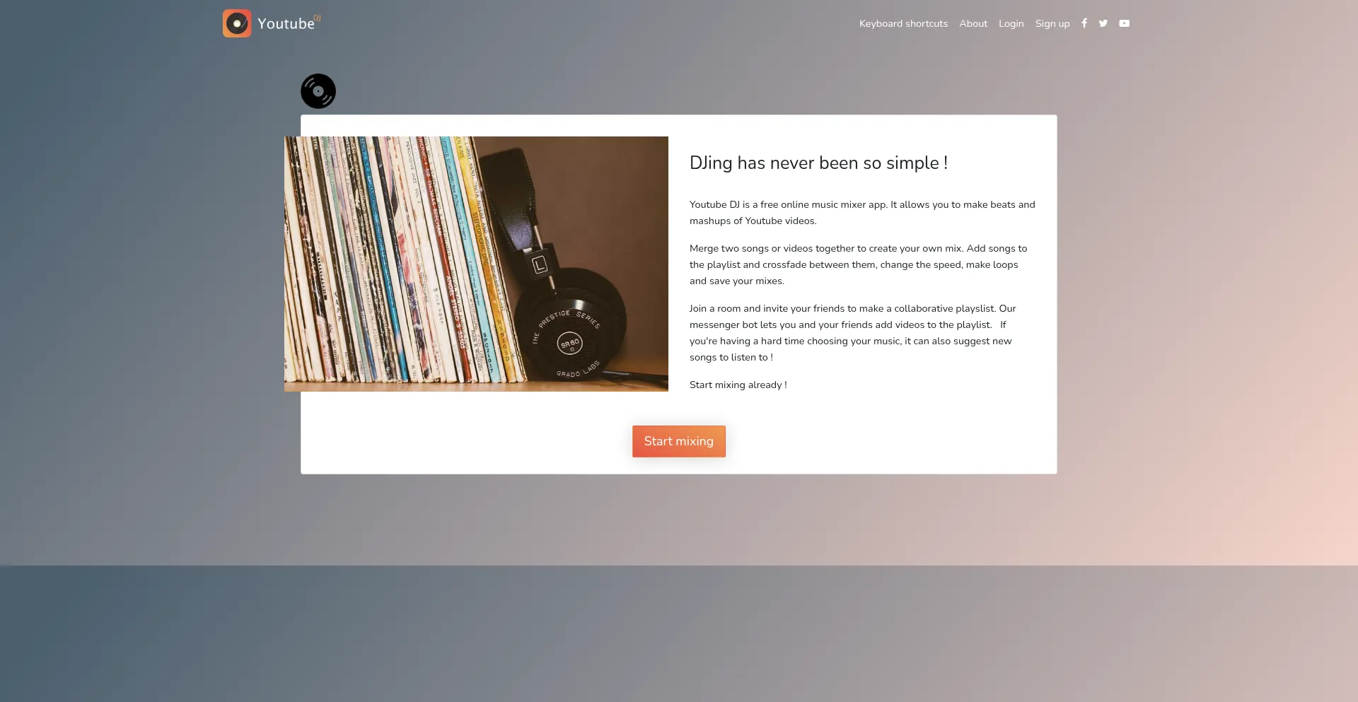 Youtube DJ is a free online music mixer app. It allows you to make beats and mashups from Youtube videos.