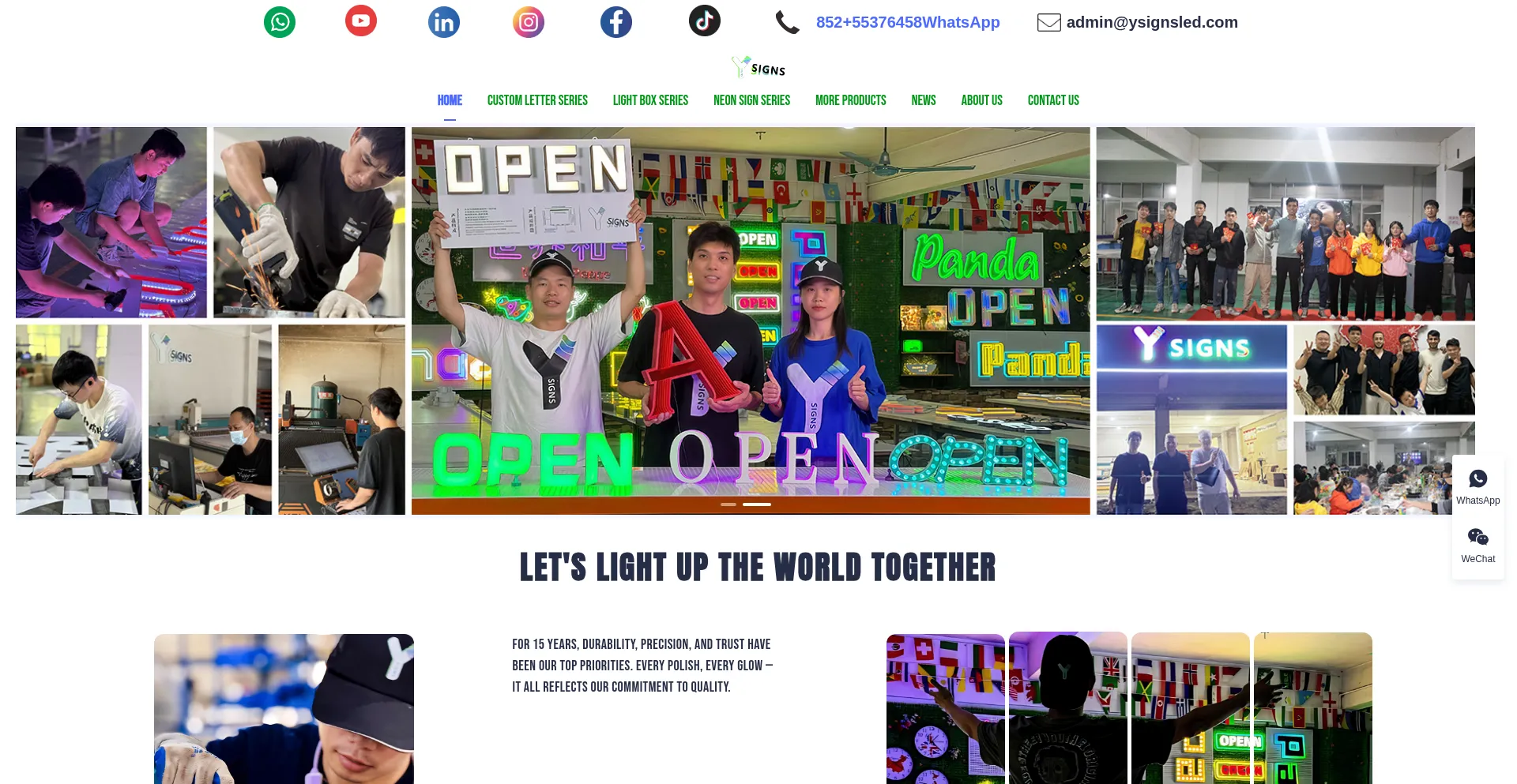 网站上存在社交媒体链接表明 ysignsled.com 在社交媒体上维护官方账户,这是可信度和参与度的积极信号。