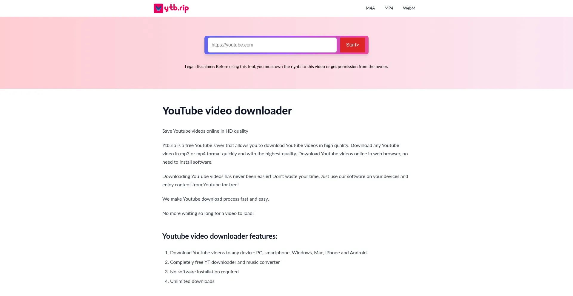 ytb.rip 使用 Google Tag Manager 在其网站上添加和更新追踪代码(标签)。