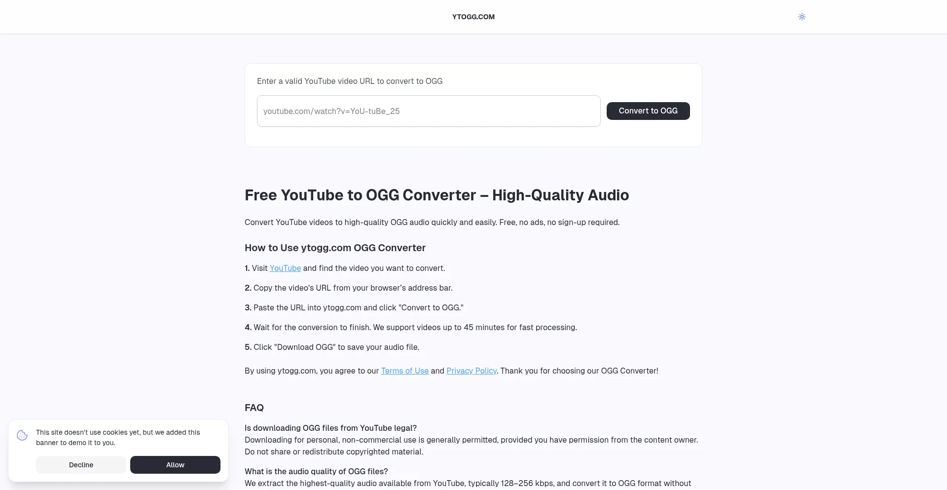Free YouTube to OGG Converter | yt to OGG Online Tool - ytogg.com