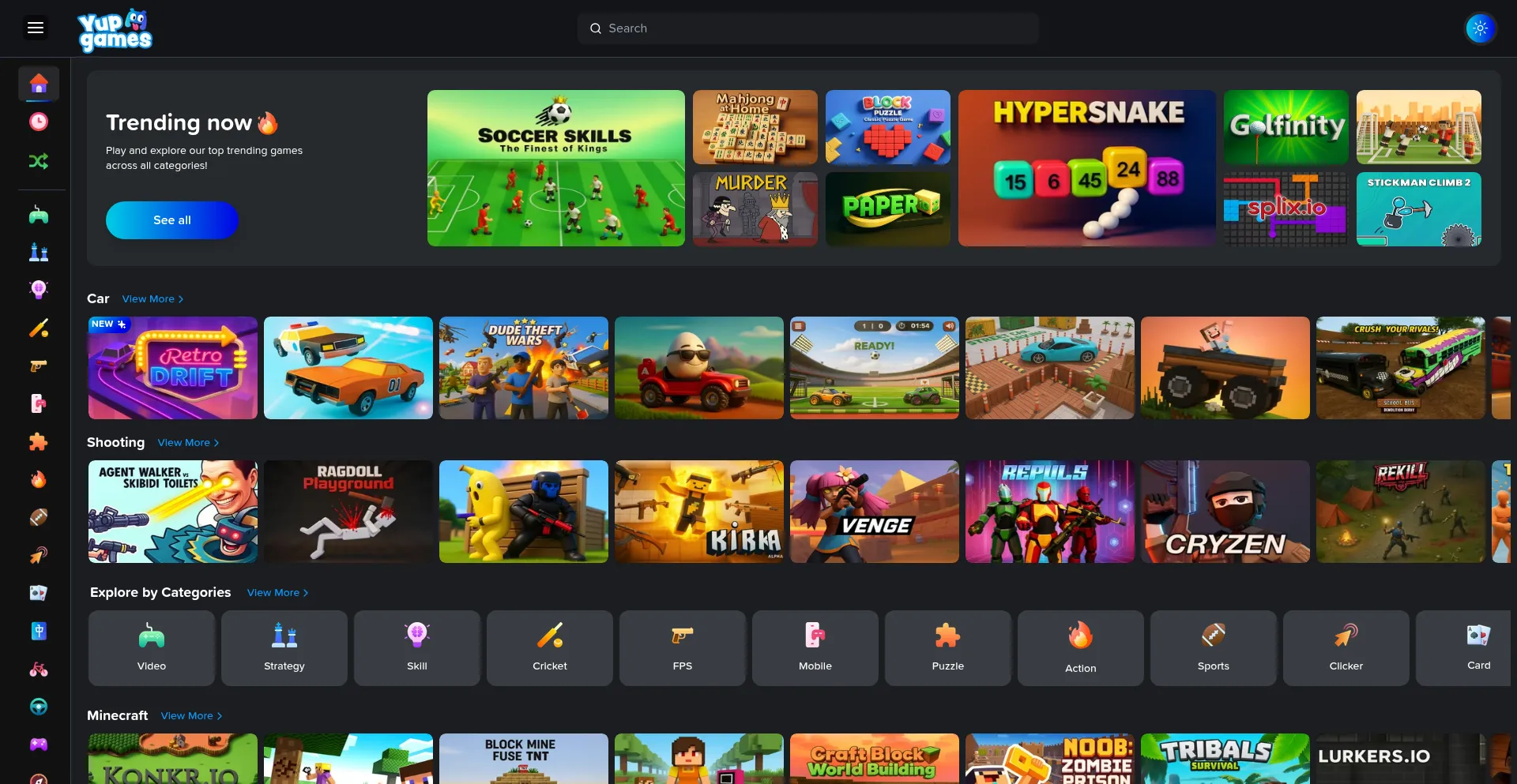 Play free games online without downloading on YupGames. Instantly enjoy racing, puzzle & action games on mobile or PC—no installs, just nonstop fun.