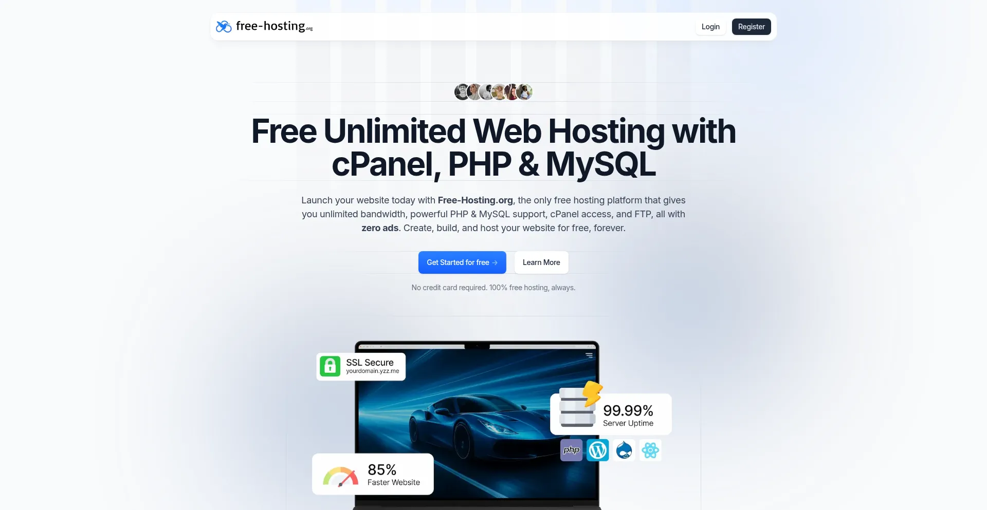 Host your PHP and MySQL website for free forever powered by cPanel and FTP with Free-Hosting.org without any ads on your website.