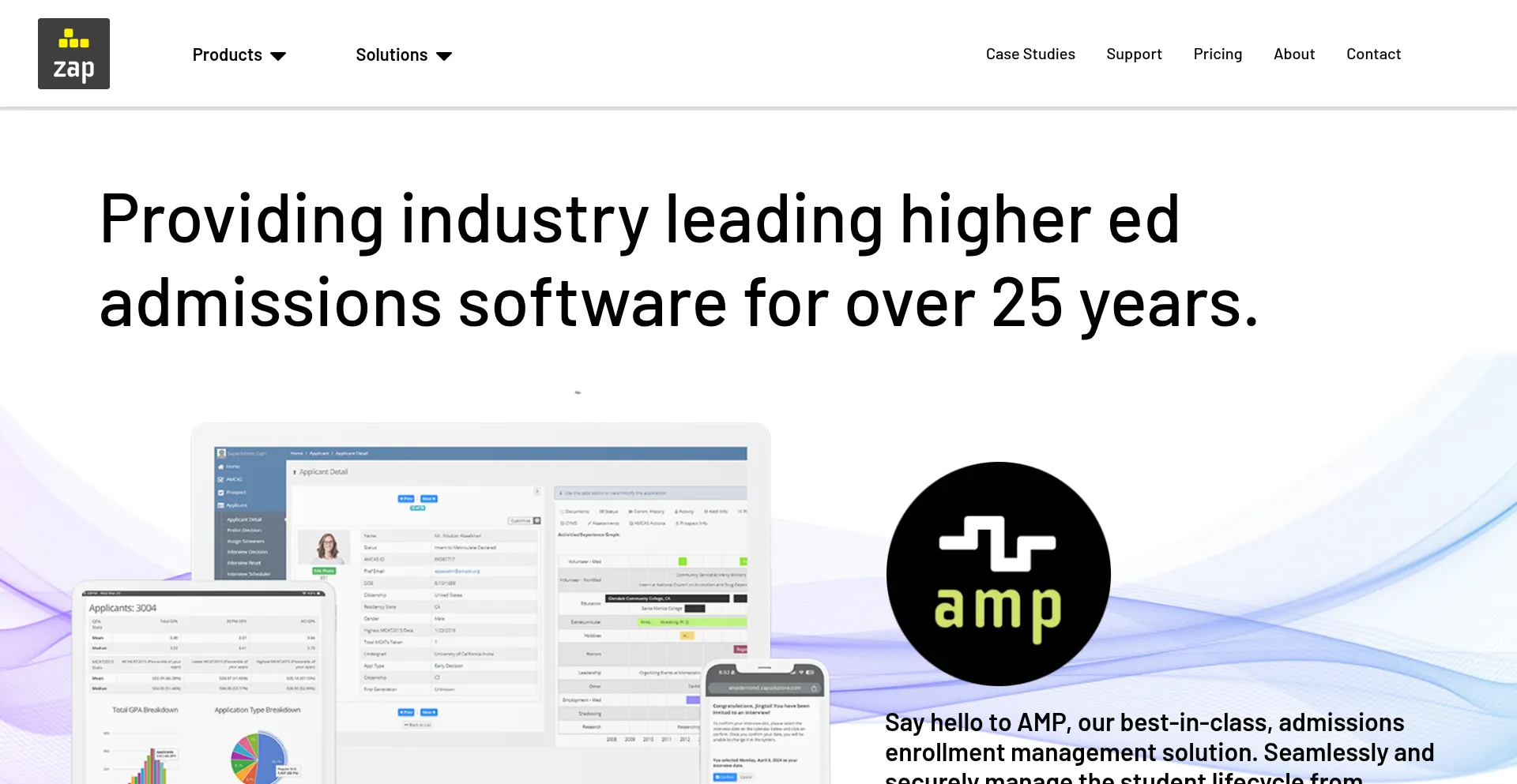 Zap Solutions is an industry leader in Higher Education (Undergraduate/Graduate/Medical) Admissions Systems for the past 25 years.