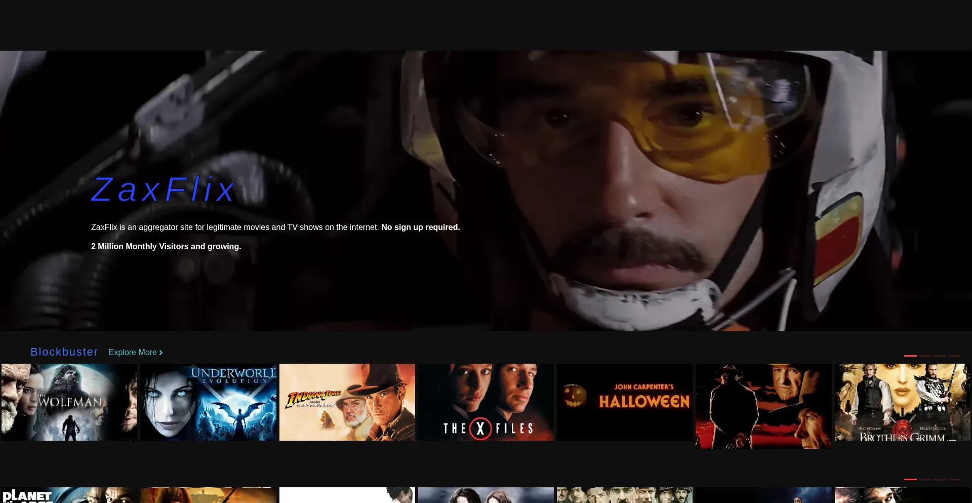 ZaxFlix ZaxFlix is an aggregator site for legitimate movies and TV shows on the internet. No sign up required.2 Million Monthly Visitors and growing. Blockbuster Explore More Th...