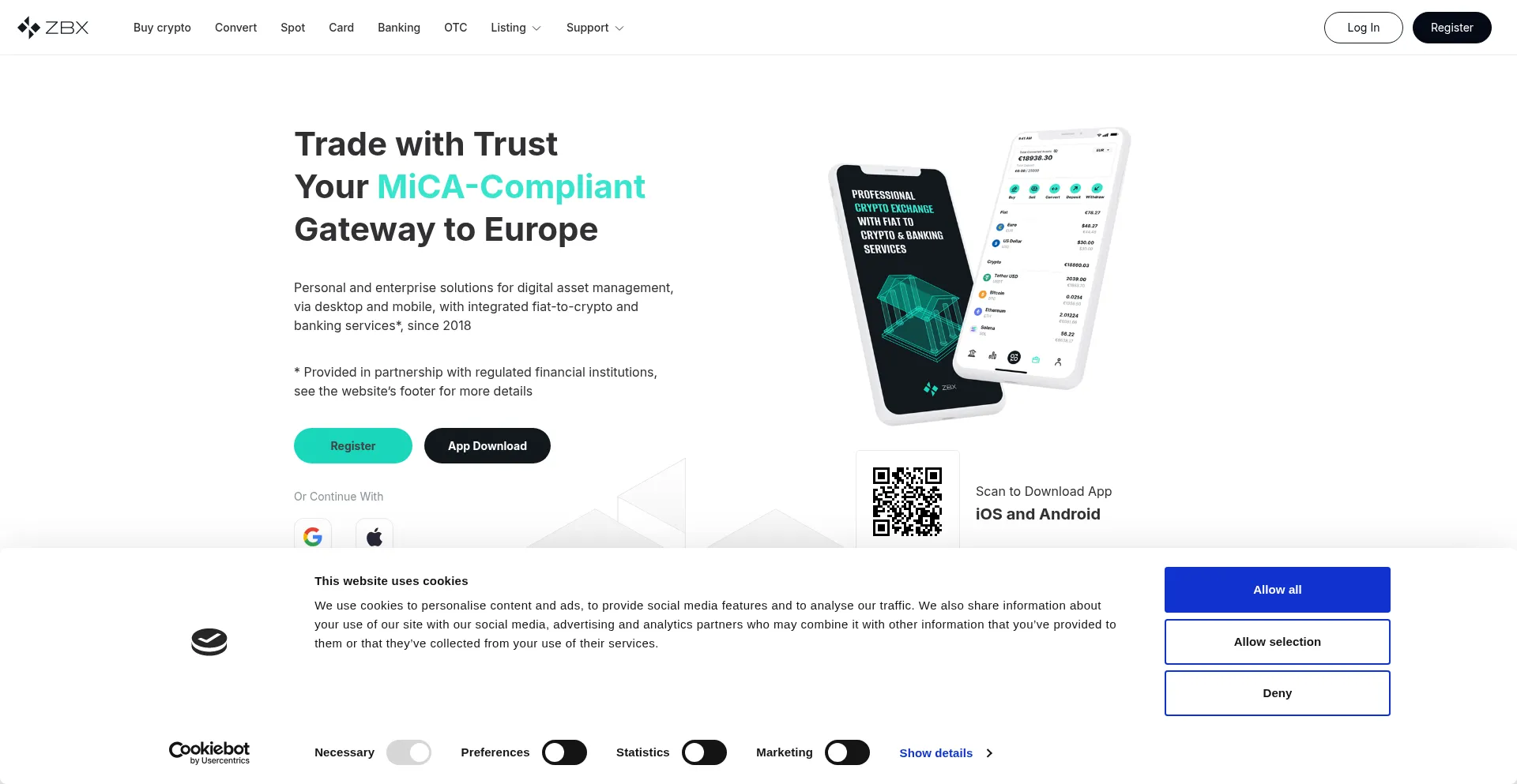 ZBX is a fiat-enabled crypto-asset service provider licensed in the EU in accordance with the MiCA regulation. It offers a full range of services, including custody, transfers, ...