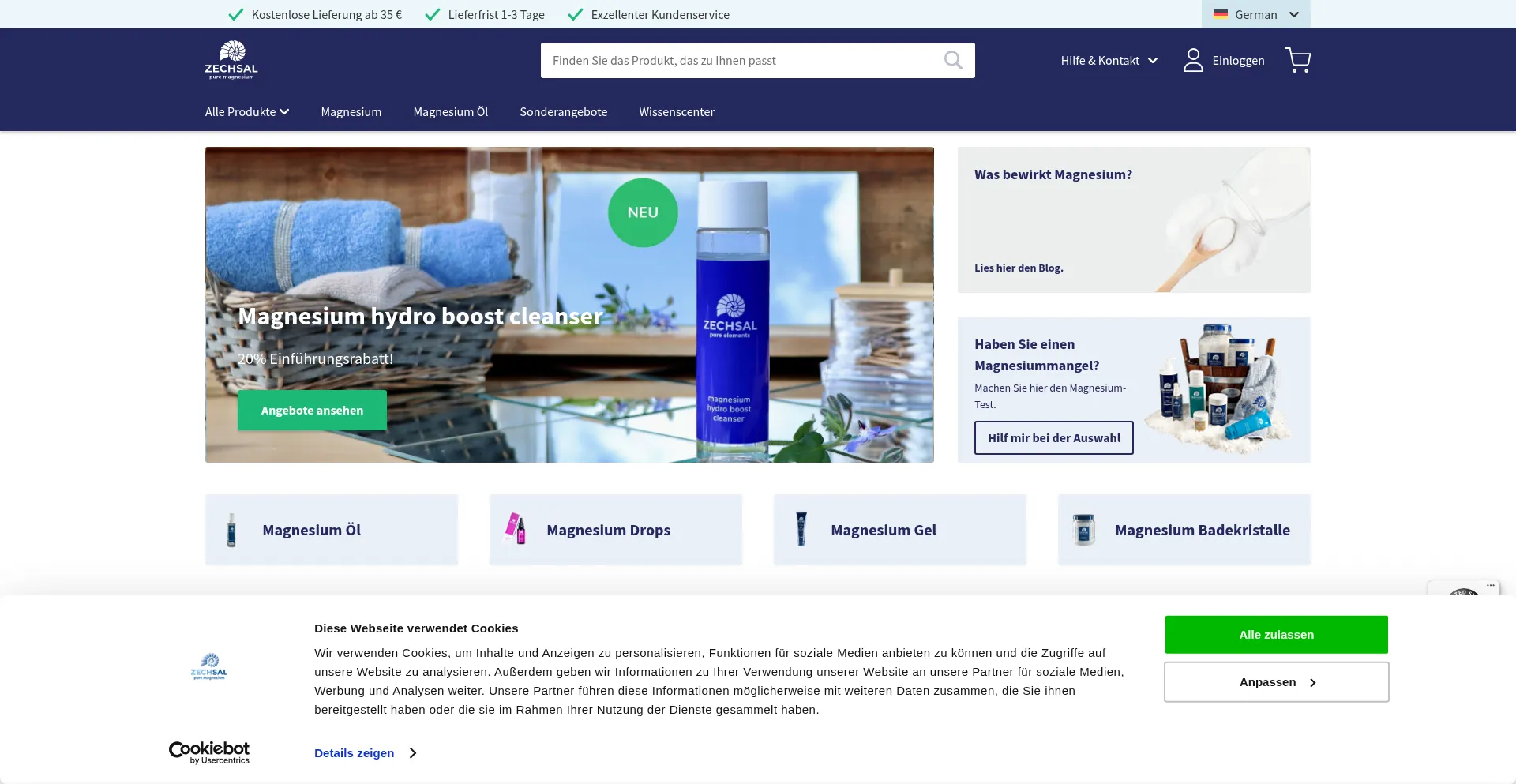 该网站实现符合GDPR或CCPA等隐私法规的cookie同意机制。这表明 zechsal-magnesium.de 遵守数据保护标准并为用户提供对个人数据收集实践的控制。