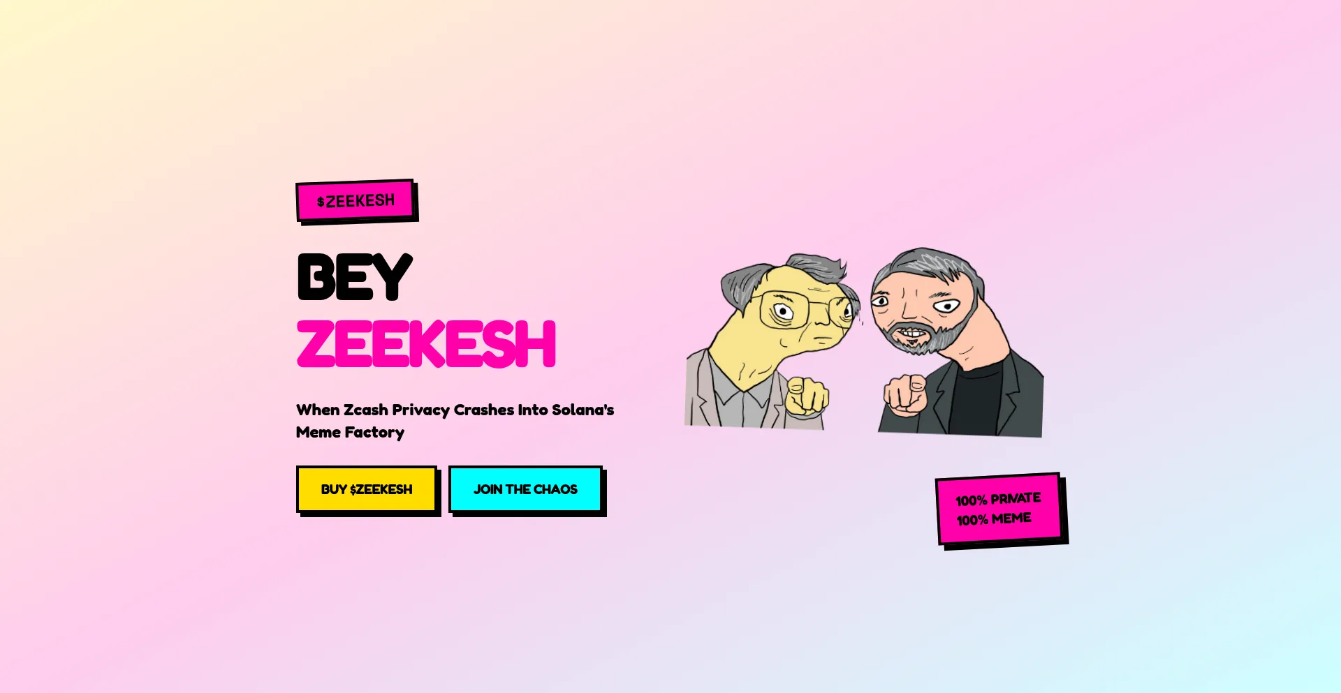 Zcash meets Solana in the wildest meme coin fusion ever. Join the Bey ZeeKesh revolution - where privacy meets pure chaos. $ZEEKESH to the moon!