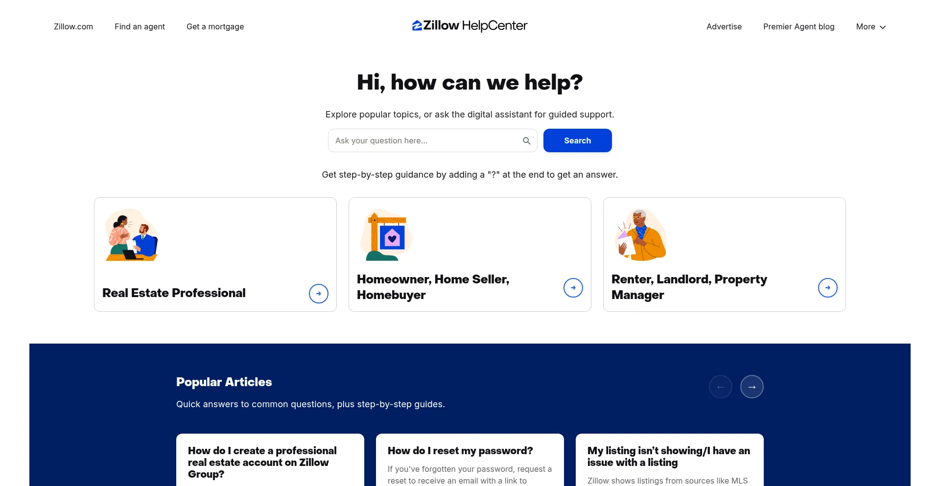 zillow.help 提供 Android 设备移动应用程序,表明平台存在已扩展到网络服务之外。