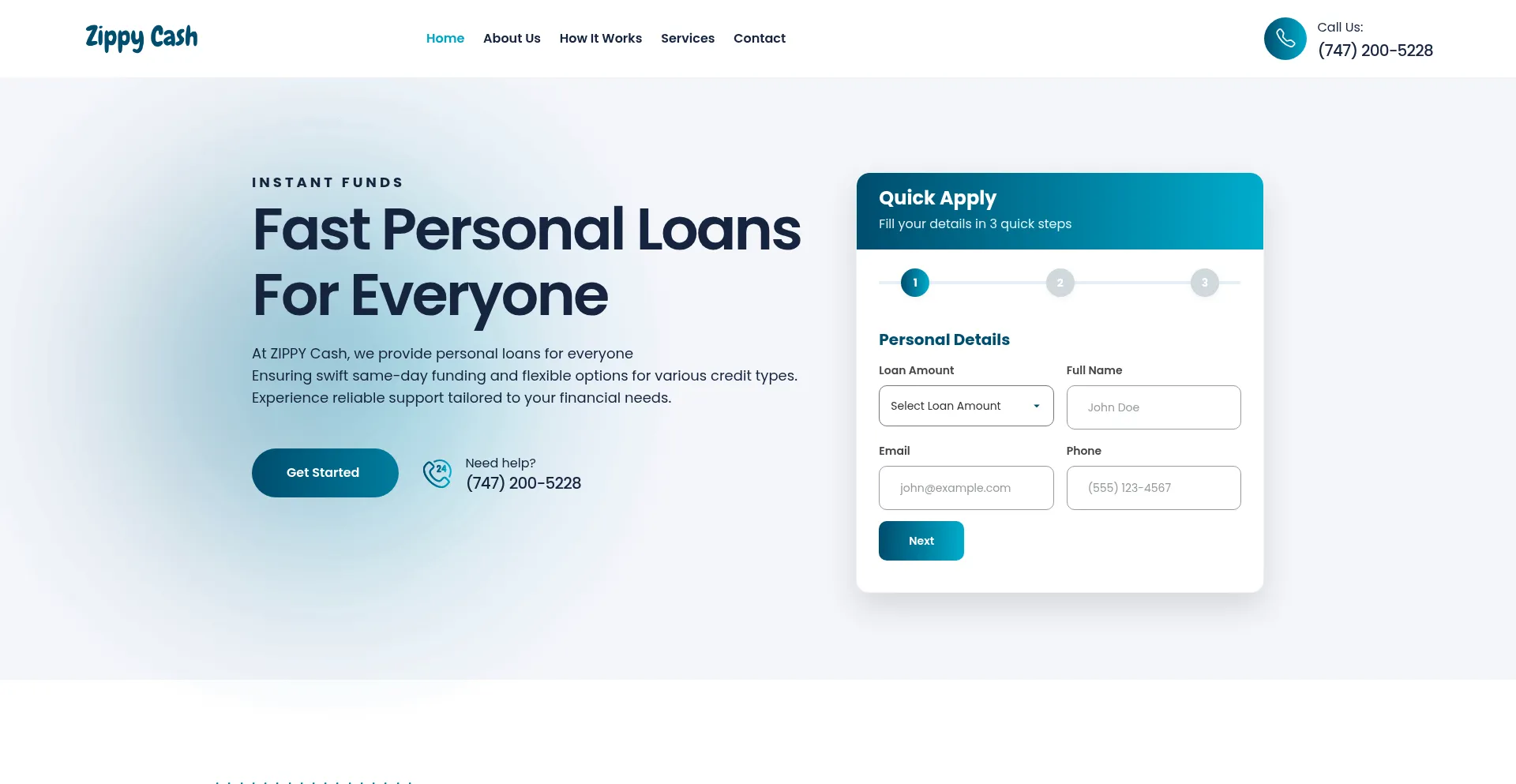 该网站实现数据收集表单,请求个人信息,包括姓名、电子邮件地址、电话号码或其他敏感详细信息。用户应验证 zippycash.online 的合法性并在提交个人数据前查看隐私政策。