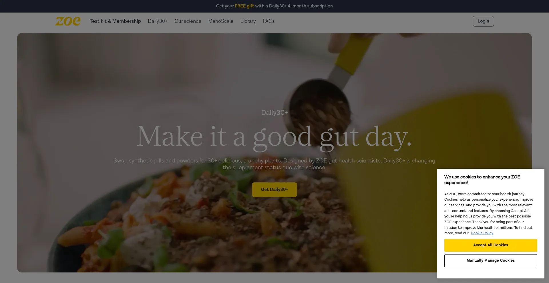 ZOE helps you improve your health with at-home tests, personalized food scores, and expert nutrition advice. Thrive with ZOE’s science-backed program!