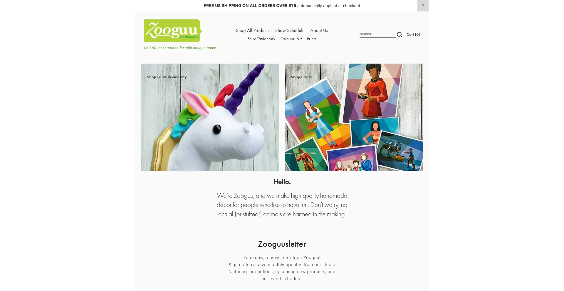 We make high quality handmade décor for people who like to have fun. Don’t worry, no actual (or stuffed!) animals are harmed in the making.