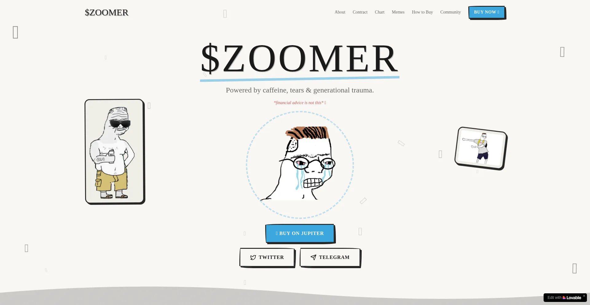 $ZOOMER is the memecoin for everyone surviving on energy drinks and calling their portfolio a personality trait. Join the Zoomer revolution.