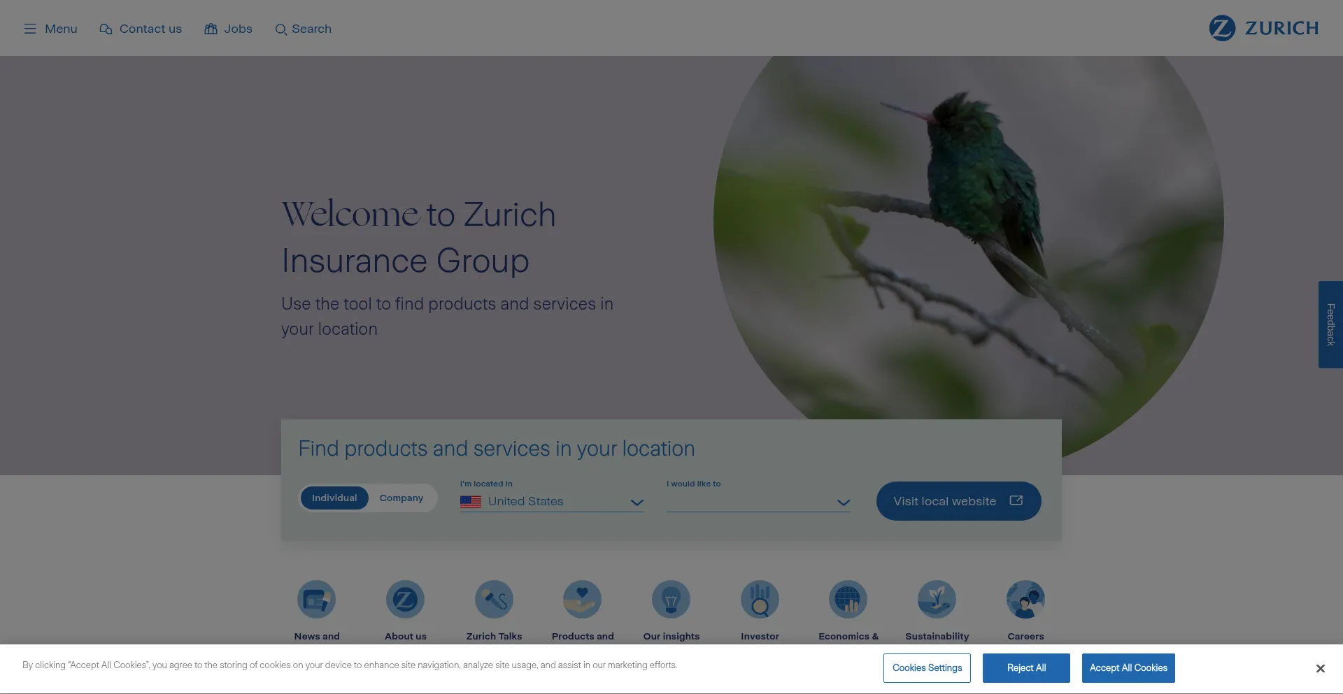 该网站实现符合GDPR或CCPA等隐私法规的cookie同意机制。这表明 zurich.com 遵守数据保护标准并为用户提供对个人数据收集实践的控制。