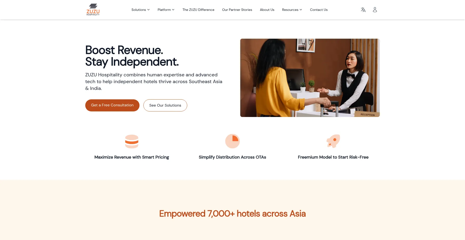 ZUZU Hospitality empowers independent hotels across Southeast Asia & India with smart pricing, OTA management, and all-in-one hospitality tech. Start risk-free today.