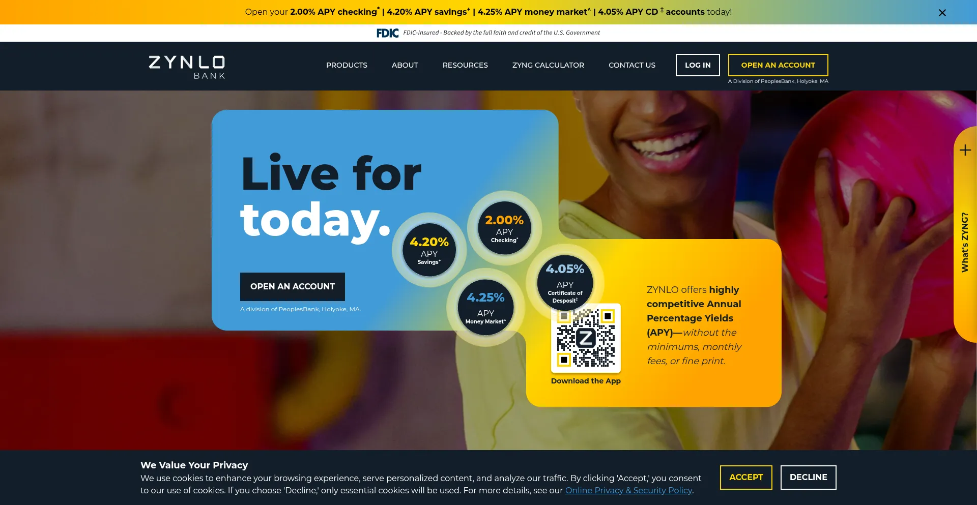 zynlobank.com 拥有可用的 iOS 移动应用程序,表明为 Apple 设备用户提供跨平台可访问性。