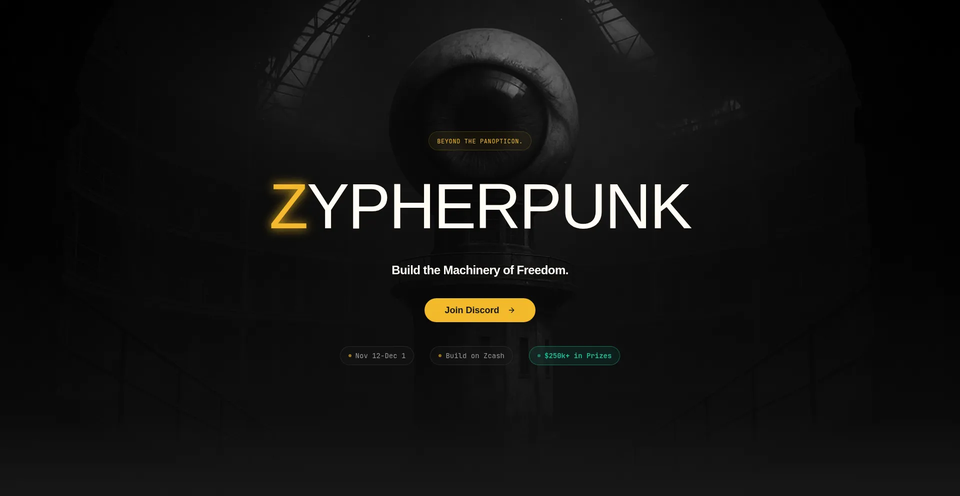 Join ZYPHERPUNK - A Zcash-focused hackathon for privacy advocates and cryptographic rebels. Come build the machinery of freedom.